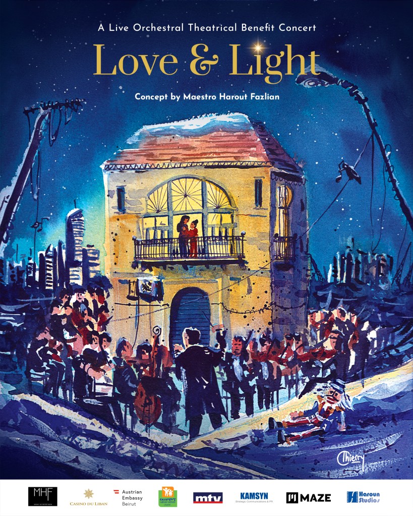 Christmas arrived at a rather critical time in Lebanon’s history putting in question the relevance of any festivities. However, it was necessary to keep the tradition of Christmas alive, as to celebrate tradition is to breathe life, hope and faith. In this context, Maestro Harout Fazlian and despite all struggles, insisted on creating a multi-dimensional innovative concept entitled “Love & Light”. This successful Orchestral Theatrical Christmas Concert was not only an example of cultural resistance, but aimed also at supporting the Children’s Cancer Center of Lebanon (CCCL) to pursue its mission. Furthermore, it helped directly varied artistic communities (more than 250 artists, musicians, technicians, etc.) thanks to generous donations made by philanthropists and arts lovers with the aim of bringing a breath of life, hope and faith to the distressed Lebanese population.